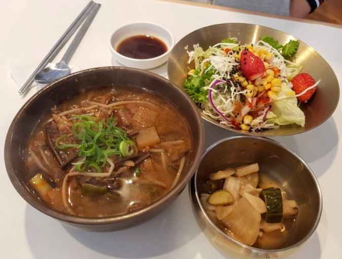 위 비빔냉면은 달고 약간 시며 특별히 호불호가 없을만한 맛 이었습니다. 하지만 조금 맛이 강하다는 느낌이 있었는데요. 이때 현지 로컬의 팁을 얻을 수 있었습니다. 처음에 가면 서비스로 온 육수가 나오는데요. 추가 냉 육수도 무료로 받을 수 있습니다. 냉 육수를 추가로 주문하여 비빔냉면에 냉육수를 섞어서 먹으면 강한 맛이 조금은 희석되어 딱 먹기 좋은 물 비빔 냉면이 됩니다. 맛이 훨씬 더 올라가는 것을 느낄 수 있습니다.