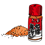 시치미(七味唐辛子, 시치미토가라시 이하 시치미)란 고추를 주 재료로 하여, 일곱 가지 향신료를 섞어서 만들어진 것에서 그 이름이 유래되었습니다. 최근에는 반드시 일곱 가지 재료로만 만드는 것은 아니고 레시피에 따라서 사용하는 재료는 달라진다고 합니다. 주로 고춧가루를 베이스로 하여 생강, 평지, 양귀비 씨, 귤껍질, 유자, 산초, 참깨, 검은깨, 파래김 등등 여러 가지 향신료를 배합하여 만듭니다. 쉽게 생각하면 고추가루를 베이스로 한 여러 가지 향신료를 섞은 양념 정도로 생각하시면 편하겠습니다.