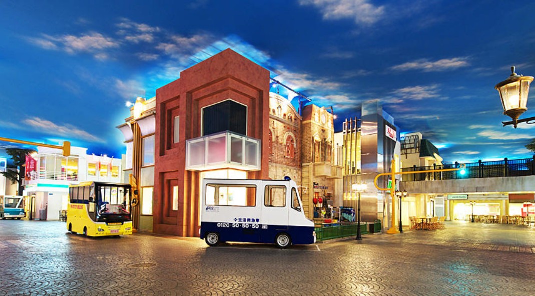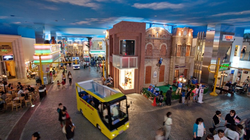 실제 거리를 미니어처로 작게 만든 키자니아 도쿄입니다. 지극히 리얼하게 만든 현실 사회의 2/3 사이즈의 거리입니다. 아이들이 놀면서 사회 시스템을 배울 수 있다는 장점이 있습니다. 특히 이곳에서 실제로 일을 할 수 있으면 일을 하면 '키자니아 도쿄'의 독자적인 통화인 일명 '킷조'를 지급받을 수 있으며 이것으로 쇼핑을 할 수 있습니다.